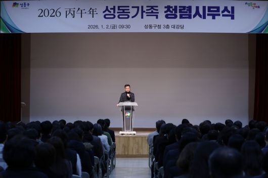 [헤럴드경제=박종일 선임기자]서울 성동구(구청장 정원오)는 2026 병오년 새해를 맞아 지난 1월 2일 청렴시무식을 개최하고 전 직원에게 한 해의 업무를 시작하는 기본 마음가짐으로서 ‘구민이 체감하는 청렴’을 당부했다.