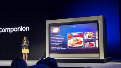 용 사장에 이어 무대에 오른 숙마니 모타(Sukhmani Mohta) 삼성전자 미국법인 홈 엔터테인먼트(HE) 통합 마케팅팀 총괄은 사용자의 질문 맥락을 이해하고 콘텐츠를 분석해 인사이트를 제공하는 TV 전용 AI 플랫폼 ‘비전 AI 컴패니언’을 직접 시연했다. 축구 경기 영상이 상영되자 모타 총괄은 “누가 이기고 있어?"라고 물었고 TV는 질문 시점까지 진행된 경기 내용을 분석해 답을 했다. 요리 프로그램 영상에 “레시피를 알려줘”라고 하자 유명 쉐프의 요리법을 요약해 제시하기도 했다.
