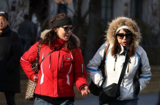서울에 20cm에 이르는 폭설이 내린 27일 서울 중구 남산 전망대를 찾은 외국인 관광객이 기념사진을 찍고 있다. 조용준 기자 |