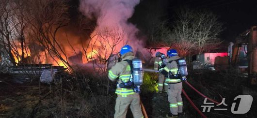 (태백=뉴스1) 한귀섭 기자 = 지난 5일 오후 11시 48분쯤 강원 태백 혈동의 한 버섯재배 창고에서 불이나 4시간여 만에 진화됐다.