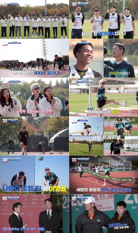 100m 전력질주 대결에서는 출발은 같았지만 국대 선수들이 압도적인 스피드를 보여주며 클래스 차이를 입증했다. 김정윤이 11초 10으로 1위를 기록했으며, 조엘 진-김장우-김국영이 그 뒤를 이었다. 이영표 부단장도 12초 91로 나름 선전했으며, 그는 “조엘 진 선수! 스타트하고 나 봤어요?”라며 자신의 활약상을 칭찬해주길 기대했다. 그러나 조엘 진은 “못 봤다”고 답해 모두를 폭소케 했다. 급기야 임세미는 “(이영표 부단장님이) 뒤에 계신데 어떻게 보냐?”고 ‘팩폭’해 웃음을 더했다.
