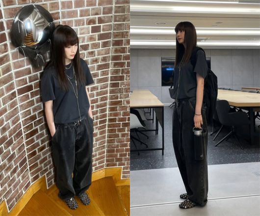 사진 속 이나영은 검은색 반팔 티셔츠에 와이드 팬츠를 매치한 올블랙 패션으로 시크한 매력을 발산했다. 긴 생머리에 앞머리를 가지런히 내려 작은 얼굴을 더욱 강조했으며, 굽 없는 단화를 착용했음에도 우월한 비율을 뽐냈다. 특히 캐주얼한 스타일도 완벽하게 소화하며 40대 후반이라는 나이가 믿기지 않는 동안 미모로 감탄을 불러일으켰다.