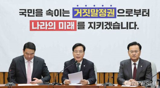 [서울=뉴스핌] 윤창빈 기자 = 송언석 국민의힘 원내대표가 6일 서울 여의도 국회에서 열린 원내대책회의에서 모두발언을 하고 있다. 2026.01.06 pangbin@newspim.com