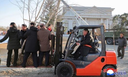 노동신문에 실린 사진을 보면 김 총비서는 건설현장에서 직접 지게차를 운전해 나무를 나르기도 했다. 김 총비서가 운전하는 지게차에 딸 김주애양과 리일환 노동당 중앙위 비서, 김정식 노동당 중앙위 제1부부장 등이 탄 사진도 공개됐다. 노동신문은 김주애양의 동행 사실을 따로 언급하지는 않았다.