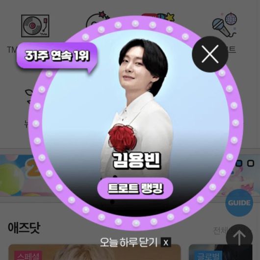 [더팩트 | 이나래 기자] 가수 김용빈이 주간 아이돌 랭킹사이트 '팬앤스타' 트로트 랭킹 31주 연속 1위에 올랐다.