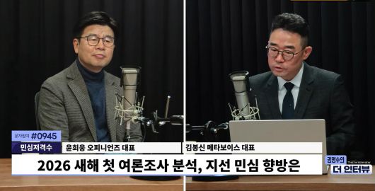 ◆ 김영수 : 민심을 잃고 여론을 분석하는 화요일 코너입니다. <민심저격수> 시간입니다. 저희가 공지해 드릴 내용이 있는데요. 오늘부터 청취율 조사 기간 시작이 됩니다. 혹시 02로 시작되는 번호로 전화가 오면 꼭 받아주셨으면 감사드리겠습니다. <김영수의 더 인터뷰> 잘 듣고 있다고 말씀해 주시면 더 큰 힘이 됩니다. 윤희웅 오피니언즈 대표, 김봉식 메타보이스 대표와 함께 하겠습니다. 어서 오십시오.