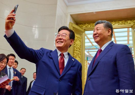 이재명 대통령이 5일 중국 베이징 인민대회당에서 국민만찬을 마친 뒤 시진핑(習近平) 국가주석에게 이같이 말했다. 이 대통령이 오른손에 중국산 스마트폰 샤오미 15 울트라를 들고 셀카 포즈를 잡자 시 주석도 따라 웃었다.