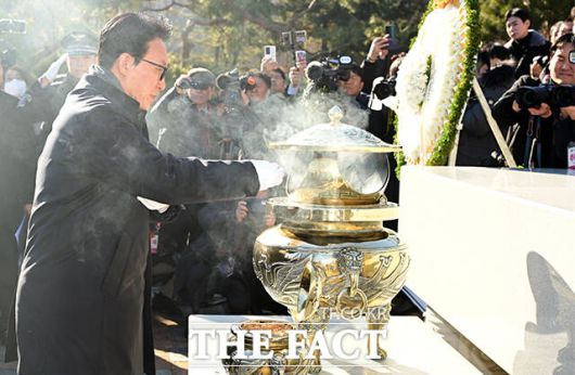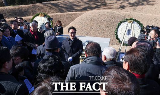 [더팩트ㅣ임영무 기자] 김민석 국무총리가 6일 오전 서울 동작구 국립서울현충원 김대중 대통령 묘소에서 열린 김대중재단 신년하례에 참석해 참배를 마친 뒤 묘소를 바라보고 있다.