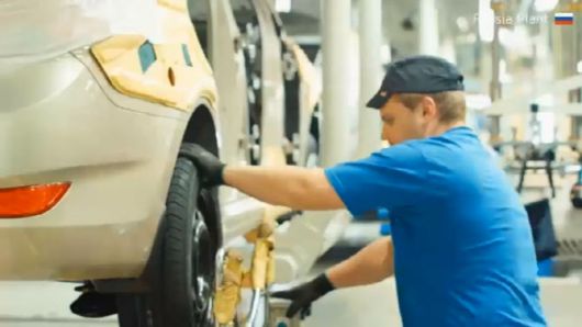 현대차 러시아 공장에서 현지 직원이 자동차를 조립하고 있다.(자료: 현대차) |