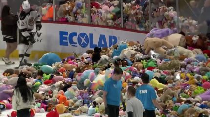 미국 아이스하키팀 허쉬 베어스가 매년 이맘때쯤 진행하는 연례행사인 '테디베어 토스'입니다.