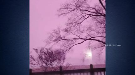눈을 머금고 낮게 깔린 구름이 햇빛 가운데 파장이 짧은 푸른 빛을 흩뜨리고, 파장이 긴 붉은 빛만 통과시키면서 이런 현상이 드물게 일어날 수 있다고 하네요.