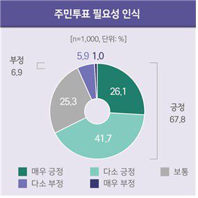 '주민투표 필요성'을 묻는 항목에서 긍정 67.8%, 부정 6.9%, 보통 25.3%로 각각 응답했다.