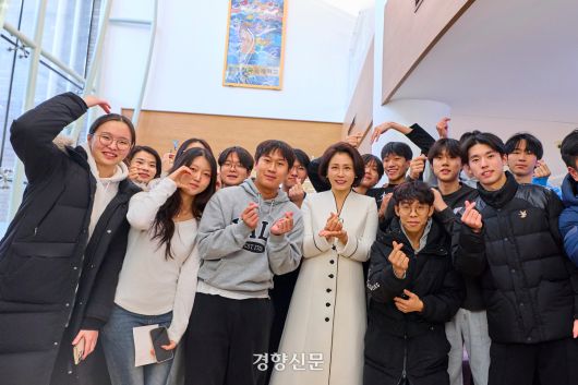 김혜경 여사는 학생들과 함께 사진을 찍은 뒤 학부모, 교직원과 간담회를 가졌다.