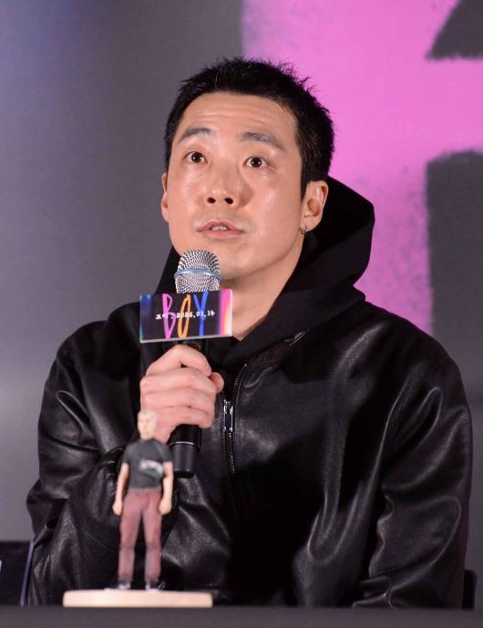 이상덕 감독이 5일 서울 용산구 CGV 용산점에서 열린 영화 '보이(감독 이상덕)'기자간담회에서 질문에 답하고 있다.