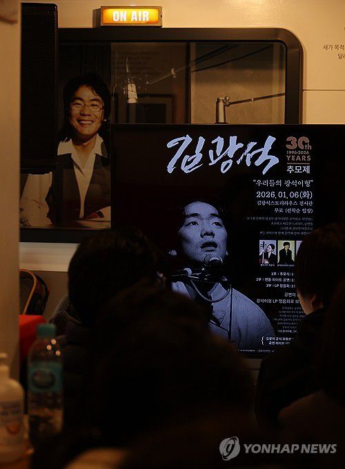 (대구=연합뉴스) 박세진 기자 = 6일 가수 김광석 30주기를 맞아 추모행사가 열린 대구 중구 김광석스토리하우스(기념관)를 찾은 시민들이 김광석을 떠올리며 추모 공연이 시작하기를 기다리고 있다. 2026.1.6