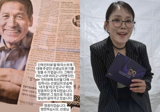그는 이어 "그때 저는 너무 어리고 나약했지만 인터뷰에 최선을 다해 임하시는 선생님의 모습에 '내가 잘하고 있구나' 믿음까지 갖게 됐다"고 고백했다. 그러면서 "그때 받은 그 힘으로 지금도 열심히 살아가고 있다"며 "영광이었습니다, 영면하십시오, 선생님"이라고 덧붙였다.