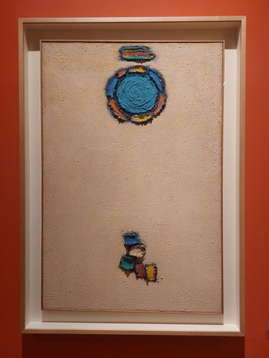 그는 출장보고서만 국내에 제출한 채 전시 뒤 곧장 뉴욕으로 날아가 버렸다. 이후 록펠러재단 지원 아래 뉴욕에 정착해 고틀리브와 교유하면서 70년대 초 푸른 점화로 이어지는 우주적 화풍의 기틀을 닦게 된다. 서로 건강을 걱정하며 그림 세계를 소통했던 두 작가는 공교롭게도 1974년 같은 해에 삶의 마침표를 찍었다. 지금 서울 한남동 페이스갤러리에서 1960~70년대 고틀리브의 당대 그림들과 김환기의 뉴욕 시기 점선 그림들을 처음 한자리에 모은 2인전 ‘추상의 언어, 감성의 우주’(10일까지)가 열리고 있어 화풍의 친연성을 살필 수 있다.