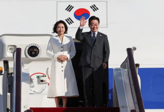 (베이징(중국)=뉴스1) = 중국을 국빈방문 중인 이재명 대통령과 김혜경 여사가 6일 베이징 서우두 공항 상하이행 공군 1호기에서 환송객에게 인사하고 있다. |