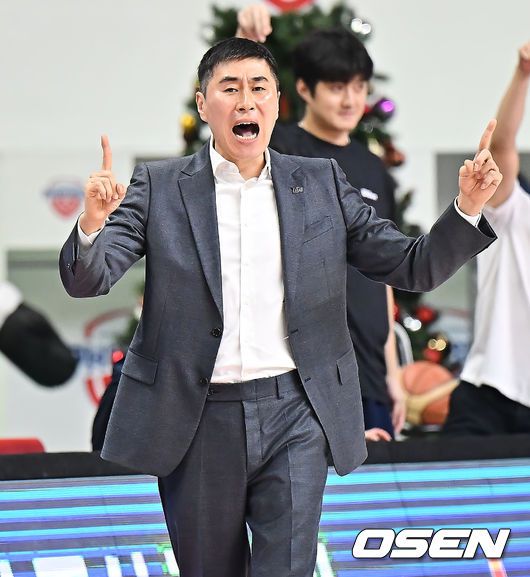 [OSEN=울산, 이석우 기자] 6일 울산 동천체육관에서 2025-2026 LG전자 프로농구 울산 현대모비스와 부산 KCC의 경기가 열렸다. 울산 현대모비스와 부산 KCC가 각각 2연패와 4연패의 위기를 딛고 나란히 연패 탈출의 돌파구를 찾아야 하는 절실한 상황에 놓여 있다. 부산 KCC 이상민 감독이 선수들을 독려하고 있다. 2026.01.06 / foto0307@osen.co.kr