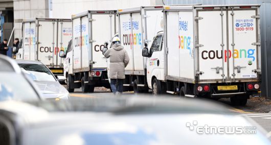 최근 대규모 정보 유출 사태로 미흡한 보안의식이 도마에 오른 쿠팡이 뒤늦게 물류센터 단기·계약직 직원 관리용 코드 체계 손질에 나섰다. 9일 서울 시내 쿠팡 물류센터에 쿠팡카가 주차되어 있다. 이동근기자 foto@etnews.com |