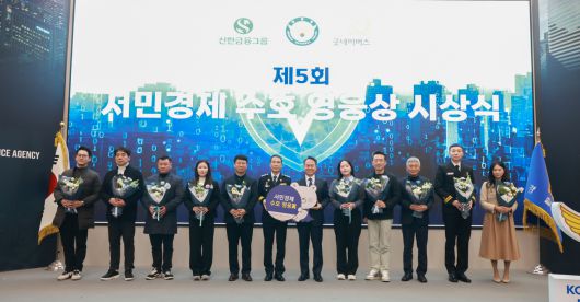 경찰청과 신한금융그룹은 이날 서울 서대문구 청사 어울림마당에서 ‘제5회 서민경제 수호 영웅상’ 시상식을 열고 경찰관 5명과 시민 유공자 5명에게 표창·감사장을 수여했다. 이들은 1인당 300만원의 포상금도 함께 받았다.