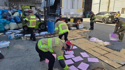 경주시와 대구지방환경청은 용액이 담겨 있던 통이 파손돼 누출 사고가 일어난 거로 보고, 원인을 조사하고 있습니다.