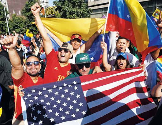 미국 도널드 트럼프 행정부가 베네수엘라 독재자 니콜라스 마두로 부부를 체포했다는 소식이 전해진 뒤, 플로리다주에 거주하는 베네수엘라 이민자 호르헤 루이스는 미 CBS방송에 이렇게 말했다. 거리로 나온 환영 행렬을 담은 방송 화면에는 베네수엘라·쿠바 출신 이민자들이 함께 환호하는 모습이 담겼다. 성조기를 몸에 두르거나 트럼프의 2024년 대선 캠페인 모자를 쓴 참가자도 눈에 띄었다.