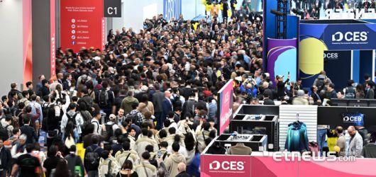 세계 최대 가전·정보기술(IT) 전시회 'CES 2026'이 개막한 6일 미국 네바다주 라스베이거스 LVCC 센트럴홀에서 참관객이 입장하고 있다.