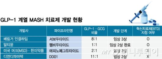 GLP-1 계열 MASH 치료제 개발 현황/그래픽=임종철 |