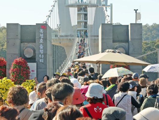 전북 임실군의 옥정호 출렁다리와 붕어섬 생태공원이 지역을 대표하는 사계절 관광지로 자리매김하고 있다.