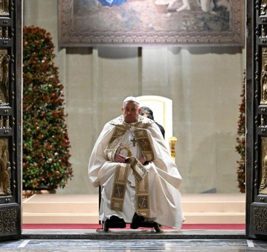 지난해 4월 선종한 프란치스코 교황이 2024년 12월 24일 베드로 대성전 성문으로 들어서며 희년의 시작을 알리고 있다. 바티칸뉴스 제공 |