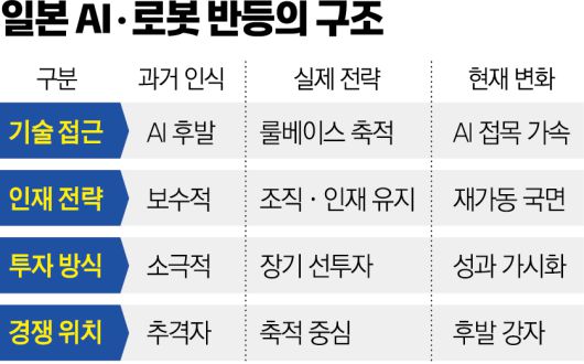 한 차례 위기를 겪은 일본 기업들은 외형 확장보다 본업의 기술력과 인재 육성이 장기 생존의 핵심이라는 점을 깨달았고, 이후 연구조직과 핵심 인력을 유지하며 내실을 다지는 데 힘을 쏟았다. 이 시기에 축적된 기술과 인력이 오늘날 AI·로봇 경쟁력의 토대가 됐다는 평가가 나온다.