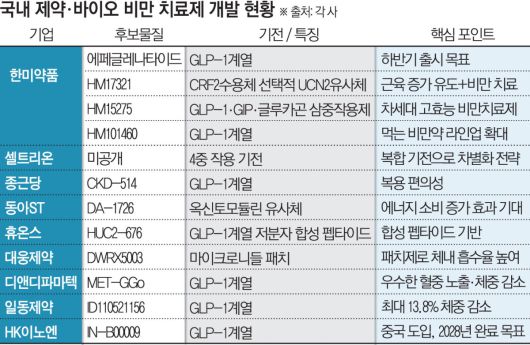 이외에도 국내의 여러 바이오 기업들이 경구제, 복합 기전, 플랫폼 기술을 앞세워 비만치료제 시장 진입을 노리고 있다.