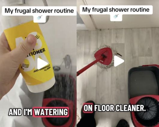 [서울=뉴시스] 한 여성이 자신의 소셜미디어(SNS)에 샤워할 때 사용한 물을 바닥 청소에 재사용 했다며 공개한 사진이다. (사진출처: 틱톡 캡처)2026.01.06. |