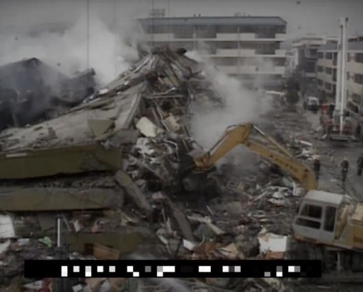 가스통 연쇄 폭발 후 무너져 내린 우암상가아파트. /사진=MBC 유튜브 채널 '모지' 갈무리 |