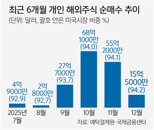 지난달 개인투자자의 해외주식 순매수 규모가 전월 대비 70% 넘게 급감했지만, 투자 자금은 여전히 미국 시장에 머물고 있는 것으로 나타났다. 정부가 투자 자금의 국내 복귀를 유도하고 있지만 투자자들은 초단기 국채 같은 달러 자산을 유지한 채 관망하는 모습을 보였다.