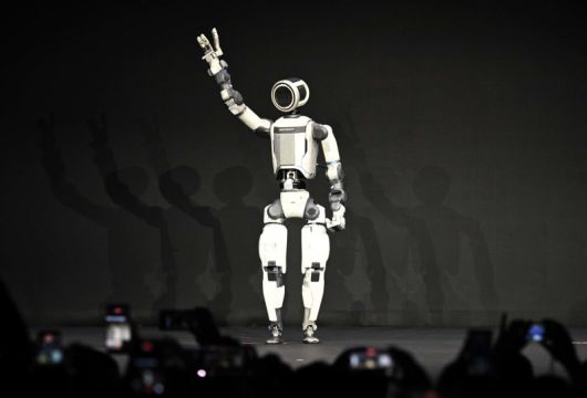 지난 5일(현지시간) 미국 네바다주 라스베이거스 만달레이베이에서 열린 현대차그룹 프레스 컨퍼런스에서 차세대 전동식 아틀라스 시제품이 손인사하고 있다. 뉴스1. |