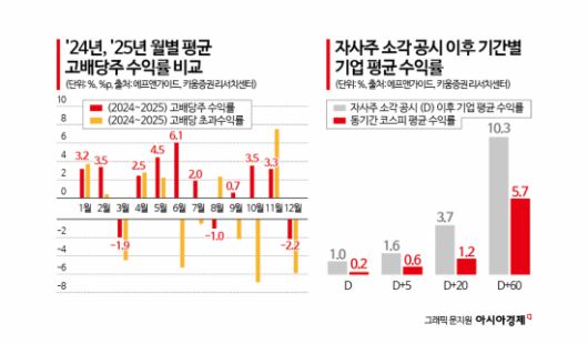 최재원 키움증권 연구원은 "대표적인 고배당 기업인 은행 등 주요 금융주들은 정관 개정을 통해 배당 기준일을 2월~3월 말, 4월 초로 변경하고 있다"며 "고배당 기업을 대상으로 한 배당향 수취 자금이 1월부터 선제적으로 유입될 가능성도 염두에 둘 필요가 있다"고 짚었다. 실제로 배당절차 개선이 적용된 2024년과 지난해 1월 고배당주의 평균 수익률은 3.2%로 코스피200(-0.6%)을 웃돌았다.