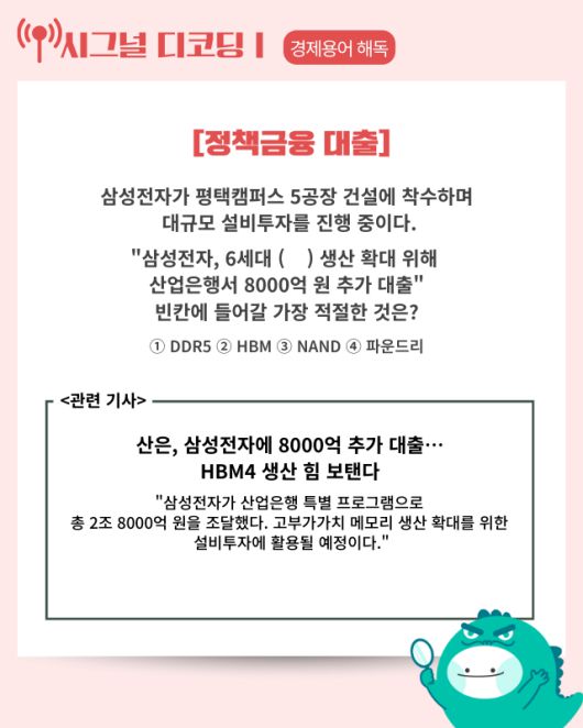 ▶기사 바로가기: 산은, 삼성전자에 8000억 추가 대출···HBM4 생산 힘 보탠다
