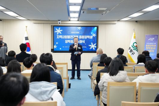구는 두 차례에 걸쳐 장학증서 수여식을 개최, 지역사회 발전에 기여한 구민의 자녀 등 지역 인재들에게 응원의 뜻을 전했다.