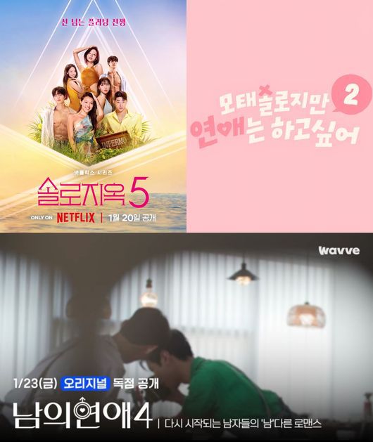 이어 오는 20일에는 넷플릭스 '솔로지옥5'가 방송된다. 이다희, 규현, 홍진경, 한해, 덱스가 패널로 나선 가운데, 더욱 매력적인 솔로들의 플러팅 전쟁을 예고해 기대를 모으고 있다. 또한 모태솔로들의 성장을 그리며 많은 응원과 공감을 끌어냈던 '모태솔로지만 연애는 하고싶어' 역시 시즌2 제작을 초고속 확정짓고 그 열기를 이어간다.