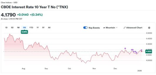 미 국채 10년물 차트, 자료=야후 파이낸스, 2026.01.07 koinwon@newspim.com |