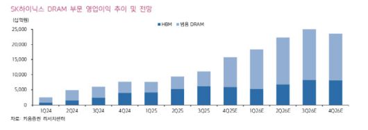 키움증권은 SK하이닉스의 올해 실적을 매출액 163조2000억원(전년 대비 72% 증가), 영업이익 102조9000억원(전년 대비 130% 증가)으로 전망했다. 2026년 사업 부문별 영업이익은 디램 90조원(전년 대비 106% 증가), 낸드 13조원(전년 대비 1068% 증가)을 각각 기록할 것으로 예상했다.