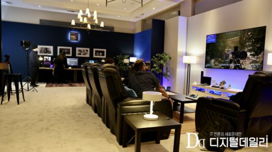 카페를 지나 거실 존으로 발걸음을 옮기자 분위기가 반전됐다. 대형 TV와 연결된 슬림한 레노버 노트북 화면에서는 고사양 FPS 게임 배틀필드 6가 긴박하게 돌아가고 있었다. 폭발음과 함께 화려한 그래픽이 화면을 가득 채웠지만, 노트북은 굉음을 내며 팬을 돌리지도, 뜨거운 열기를 뿜어내지도 않았다.
