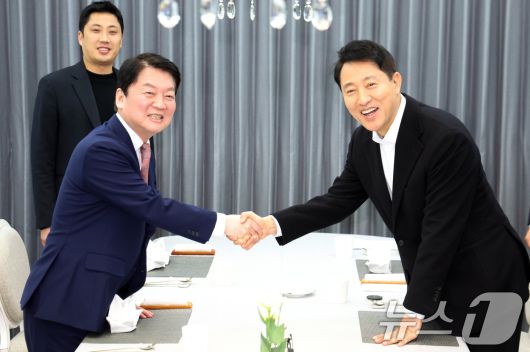 오세훈 서울시장과 안철수 국민의힘 국회의원이 6일 오후 서울 용산구 한남동 서울시장 공관에서 회동을 하고 있다. 2026.1.6/뉴스1 ⓒ News1 김명섭 기자 |