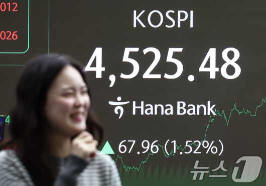 서울 중구 하나은행 딜링룸 전광판./뉴스1 ⓒ News1 |