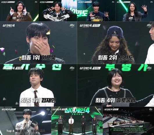 지난 6일 방송된 JTBC '싱어게인-무명가수전 시즌4' 최종회에서는 TOP 4 슬로울리, 김재민, 도라도, 이오욱이 최종 우승을 향한 마지막 경연을 펼쳤다. '다시 한번' 무대에 서고 싶다는 간절함으로 시작한 대장정은 매 라운드마다 레전드 무대를 쏟아내며 감동과 전율을 선사했다. 치열한 경쟁을 뚫고 피날레를 화려하게 장식한 무대에 시청자들 역시 뜨거운 박수와 환호를 보냈다. 최종회 시청률은 전국 3.5%(닐슨 코리아, 유료가구 기준)를 기록, 2049 타깃 시청률은 1.1%로 동시간대 전체 1위에 등극하며 호평 속 유종의 미를 거뒀다.