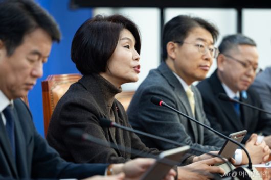 (서울=뉴스1) 유승관 기자 = 한정애 더불어민주당 정책위의장이 6일 서울 여의도 국회에서 열린 원내대책회의에서 모두 발언을 하고 있다. 2026.1.6/뉴스1 Copyright (C) 뉴스1. All rights reserved. 무단 전재 및 재배포, AI학습 이용 금지. /사진=(서울=뉴스1) 유승관 기자 |