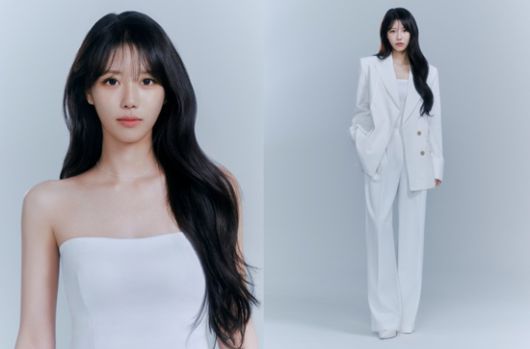 먼저 차분한 화이트 슈트를 입은 이미주는 내추럴하고 우아한 미모와 함께 맑고 투명한 분위기를 발산했다.