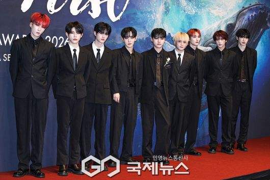 (서울=국제뉴스) 이대웅 기자 = 보이그룹 소디엑(XODIAC) 웨인, 규민, 리오, 현식, 렉스, 자얀, 범수, 씽, 다빈이 6일 오후 서울 중구 신라호텔 다이너스티홀 로비에서 진행된 '2026 대한민국 퍼스트브랜드 대상' 포토월에 참석해 포즈를 취하고 있다.